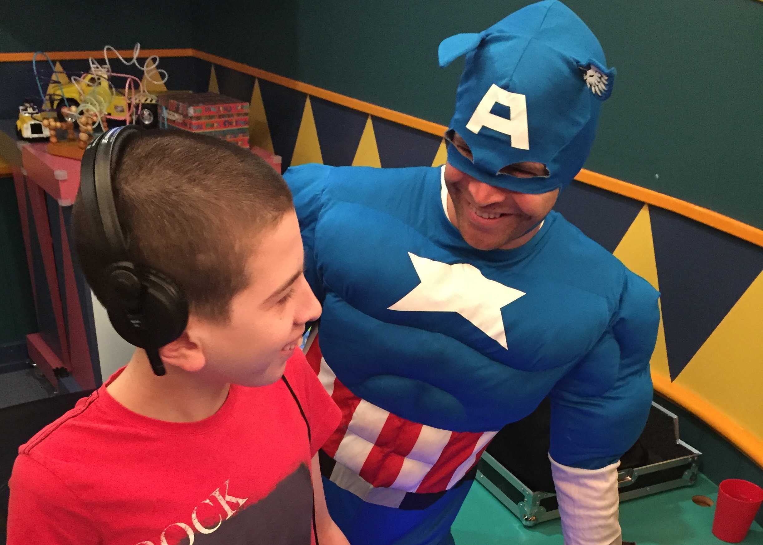 The children kicked off the weekend with a messy art therapy session with the hospice Art Cabriolet therapist. The evening quickly ramped up to a dance party with a visit from DJ Captain America (Andrew Medland).